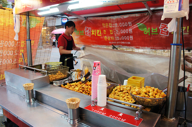 就可以發現一攤美味的韓式鹽酥雞 (컵치킨)
