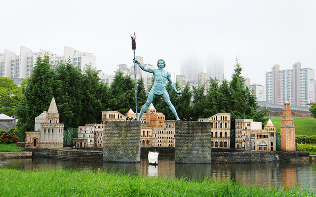 希臘羅得斯島巨像,光看這個雕像和建築物的比例就覺得好宏偉