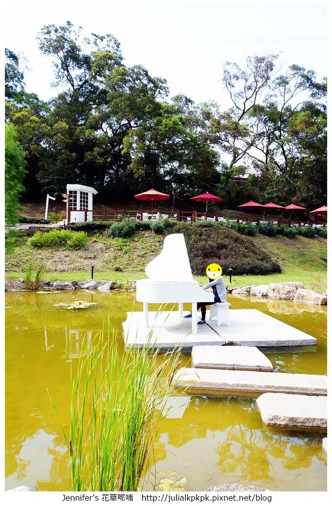 水池中央擺了架白色的鋼琴