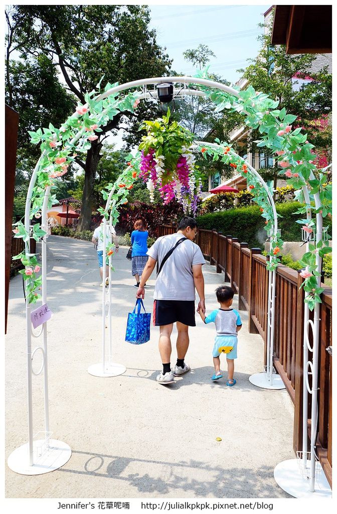 入口處有迎賓的花朵造型拱門