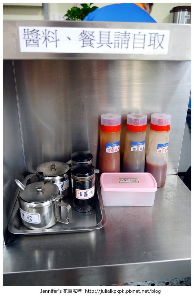 餐具和醬料都要自取喔! 櫃檯前也有放