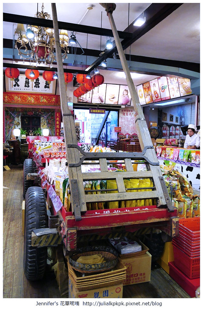 牛車造型的擺台,上面放了滿多商品的