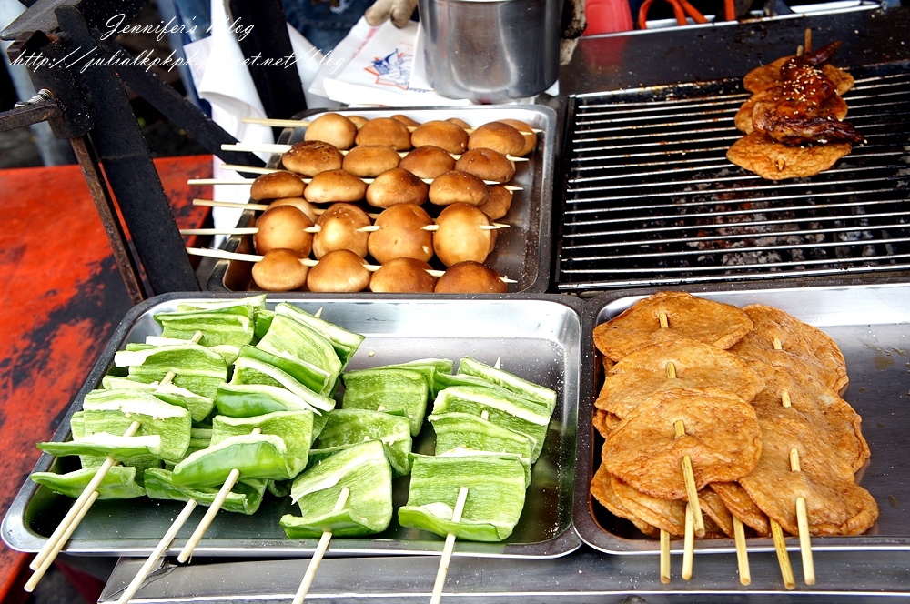 還有香菇、青椒及甜不辣,蔬菜我覺得就較普通了,還是老闆獨門醃漬的烤肉串讓我念念不忘