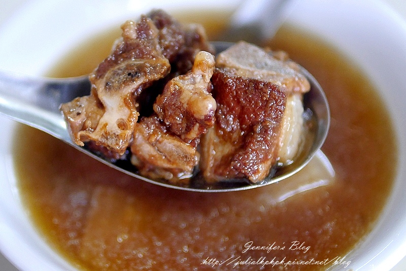 我們點了2碗大碗的肉燥飯和一碗排骨湯,上面有一片醃蘿蔔和些許甜薑及一些肉燥