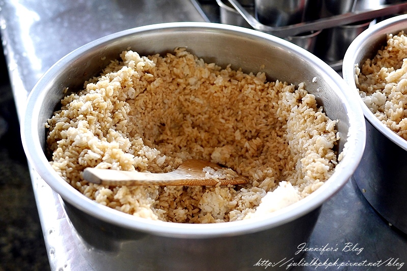 這些拌好滷汁的白米飯等一下就會被放入蒸籠囉! 其實有點像筒仔米糕的感覺