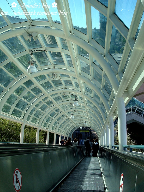 到另一園區去要搭一條很長的手扶梯下去