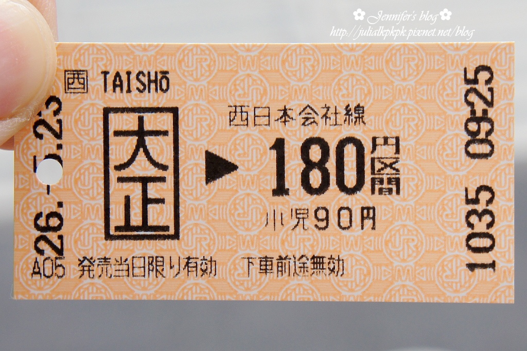 於是我們選擇先搭地鐵到大正站->再轉JR線大正站到西九條轉車(同月台換搭列車)->往櫻島(JR夢咲線)