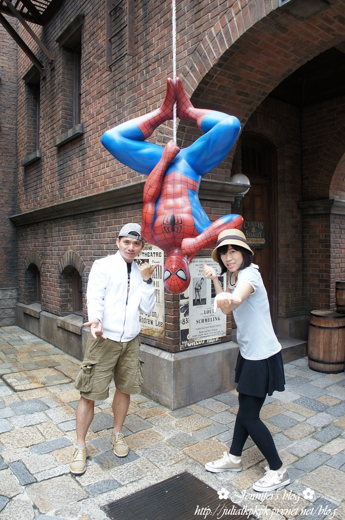 再往前走一點有一個小巷裡排了一條人龍,大家搶著和蜘蛛人拍照