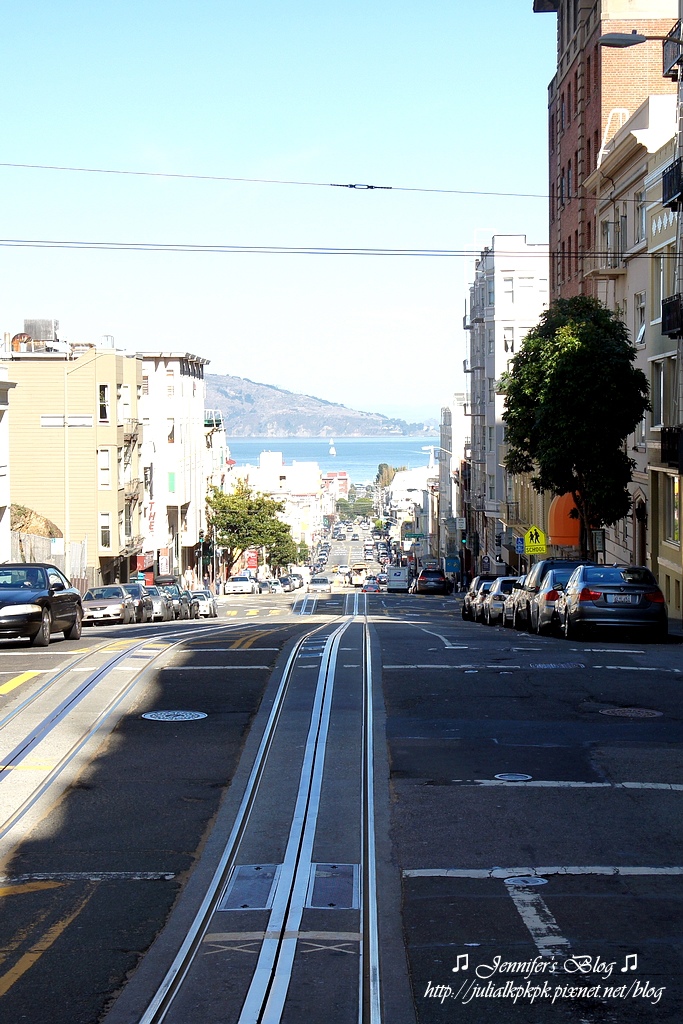 我在前頭挑了一個好位置,而且叮叮車的速度其實不是很快,所以搭著叮叮車遊舊金山的街道真的很讚
