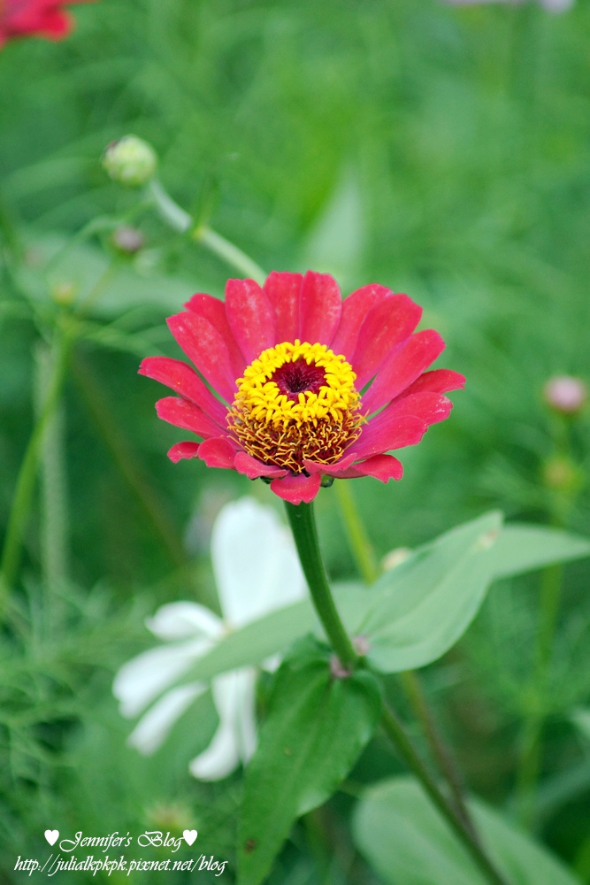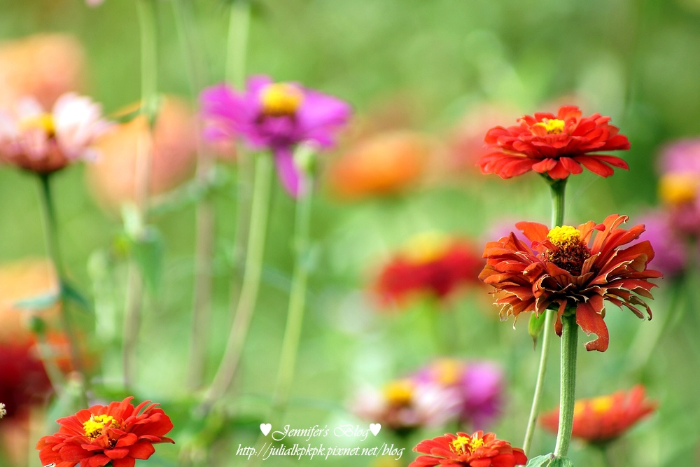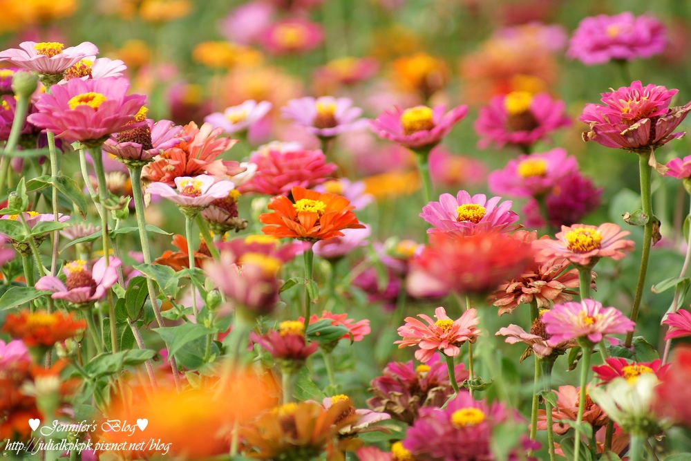 這裡的百日草長得很漂亮呀!有些花瓣超多層的。