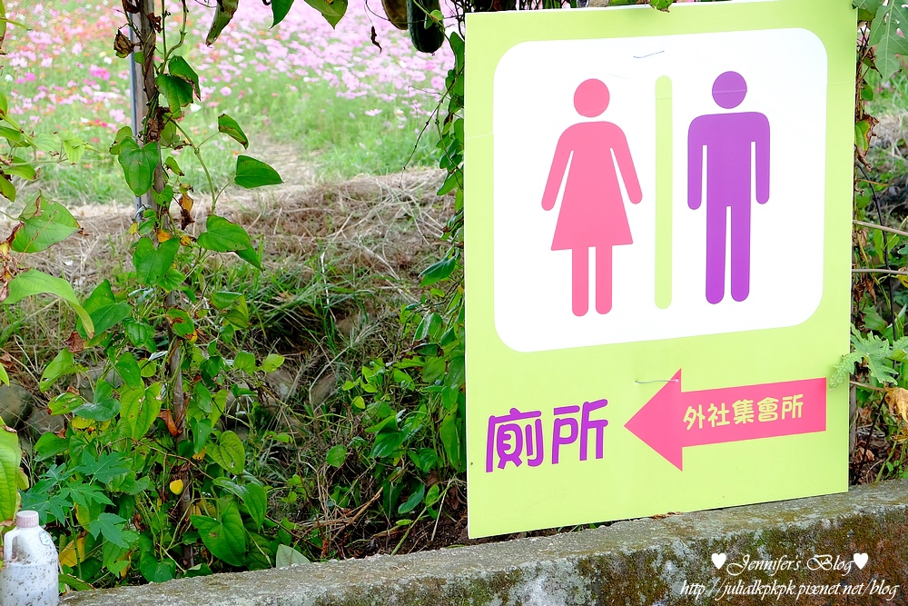 這條路走到後面就有一排流動廁所,阿肥只差幾步就到廁所了,竟然還被指示牌引導到很遠的地方上廁所呀!噗~