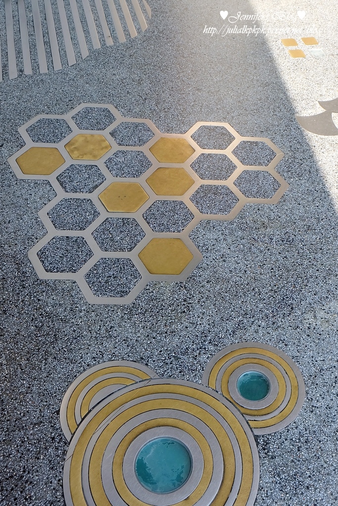 外邊走廊地面上也有很多圖案,小孩看到覺得很好玩一直追著圖案踩呀~