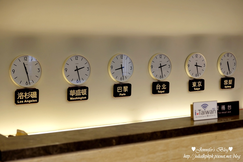 土銀展示館一樓售票處後方的牆面上有好多個時鐘,有美國、日本、澳洲及法國部分城市的時間