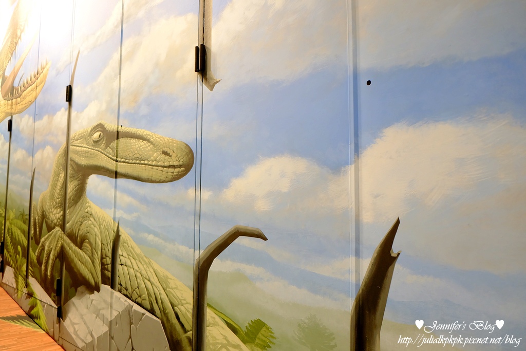由於圖中的恐龍實在太巨大,要到二樓才看清全貌,也讓孩子知道恐龍的身形到底有多龐大。