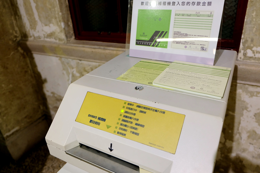 補摺機旁有這樣子的存摺可以索取,放入補摺機中可以得到很有趣的紀念唷~
