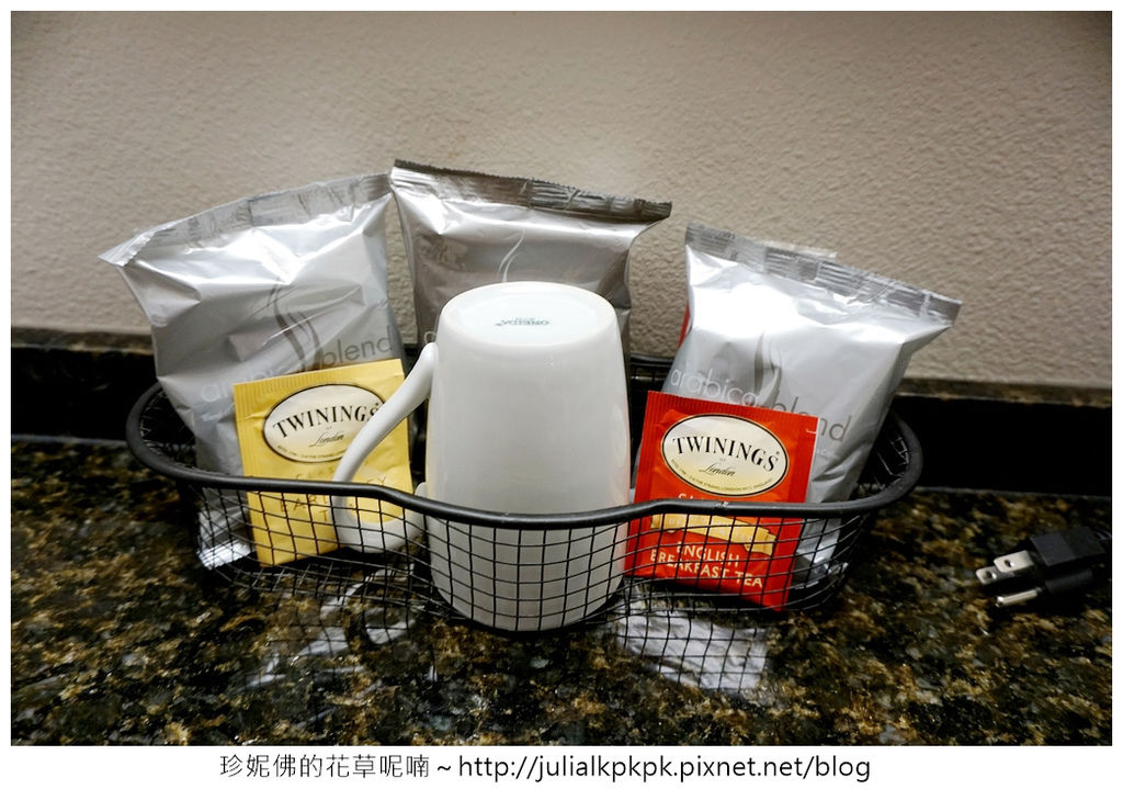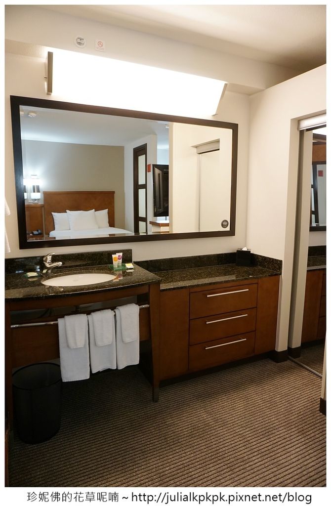 一人睡一張大床超幸福的,來美國總覺得他們的床位還蠻大的,至少跟我去日本的比起來啦! ^^"
