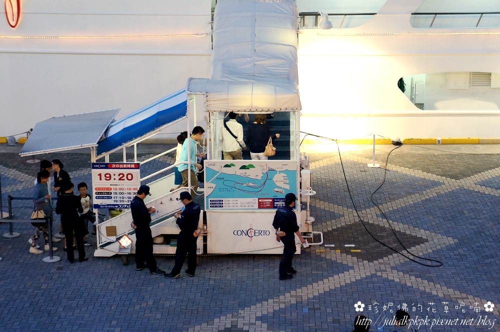 大型遊艇Concerto在傍晚時就已經停靠,遊客已經大排長龍啦!