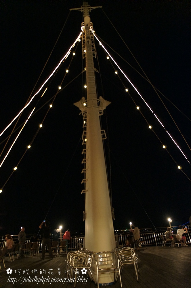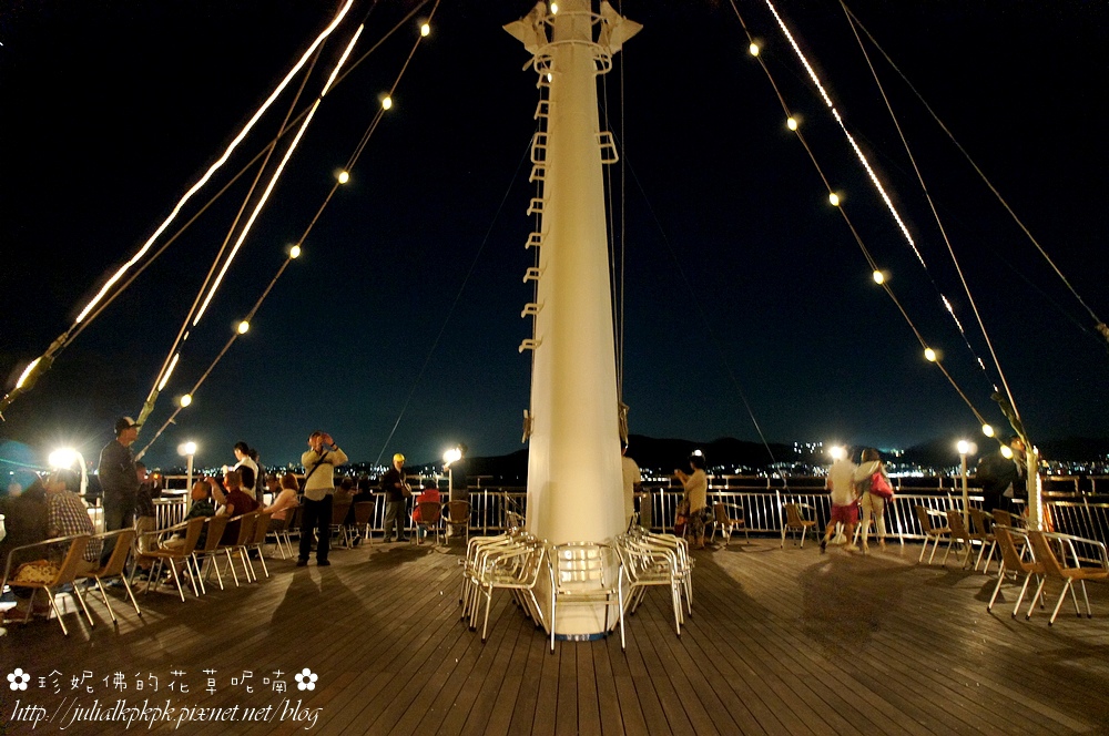 許多情侶紛紛都來到甲板上,吹著海風欣賞夜景