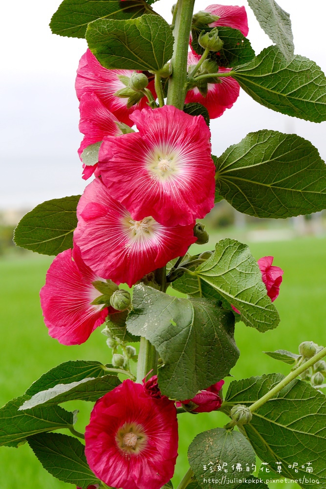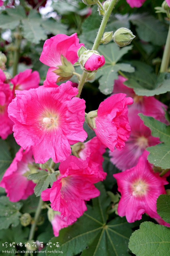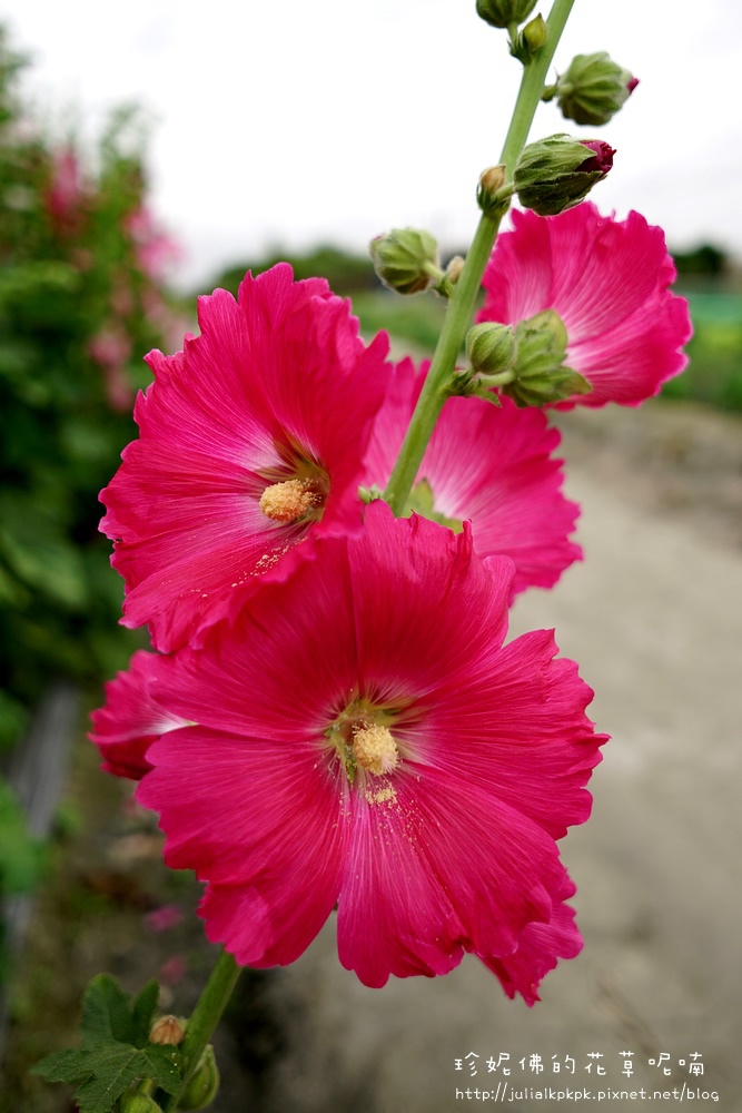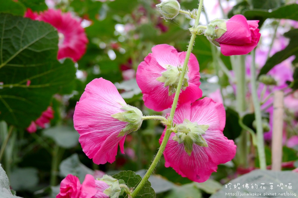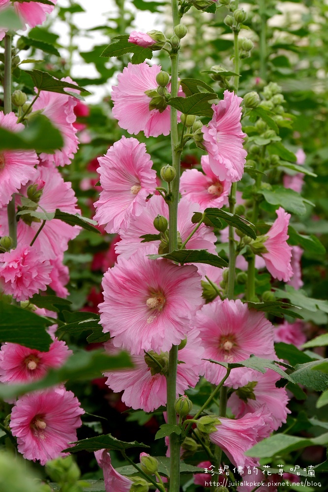 這區的蜀葵比較慢栽植的樣子,所以目前都是含苞的狀態,花開的相對比較少