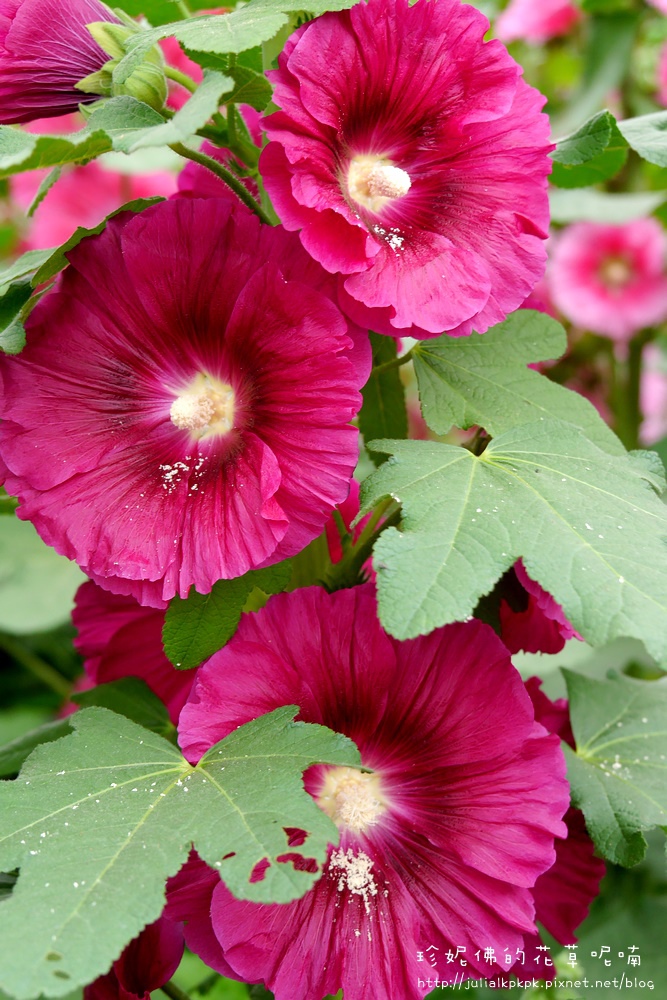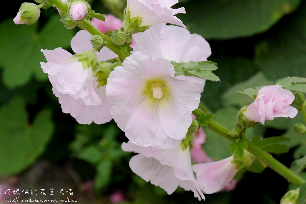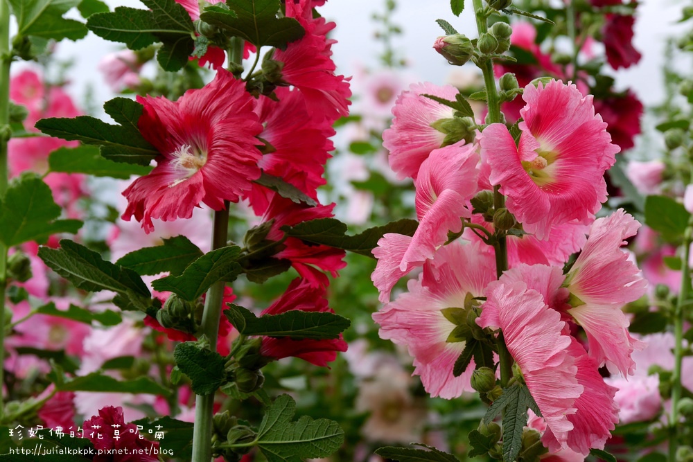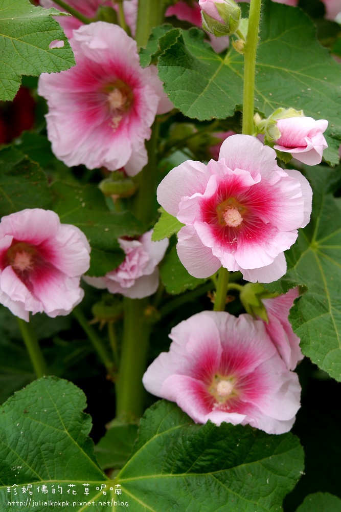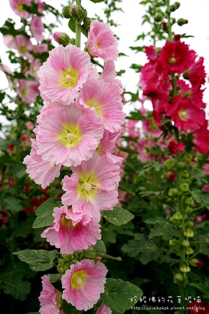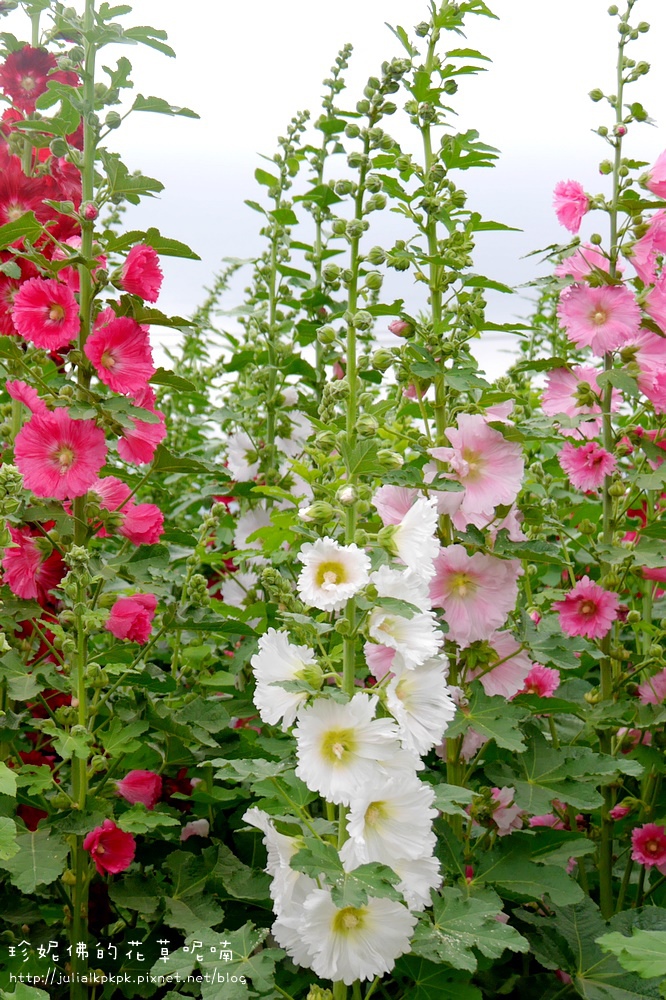 這區的蜀葵比較慢栽植的樣子,所以目前都是含苞的狀態,花開的相對比較少