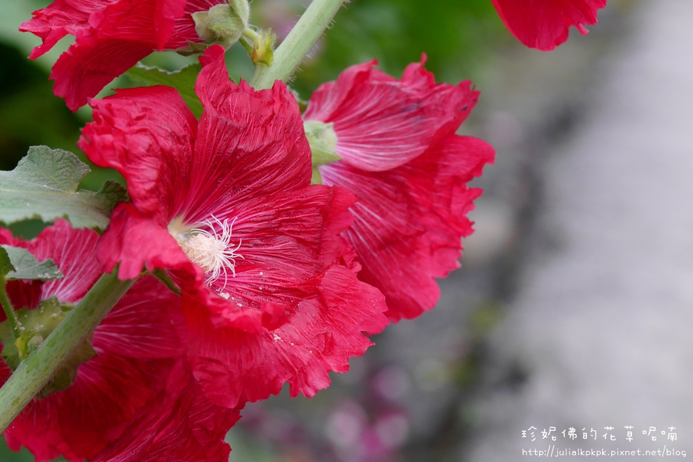 蜀葵的別名其實蠻多的,但最常聽見的就是『一丈紅』,植株最高可以長到三米,真的很高