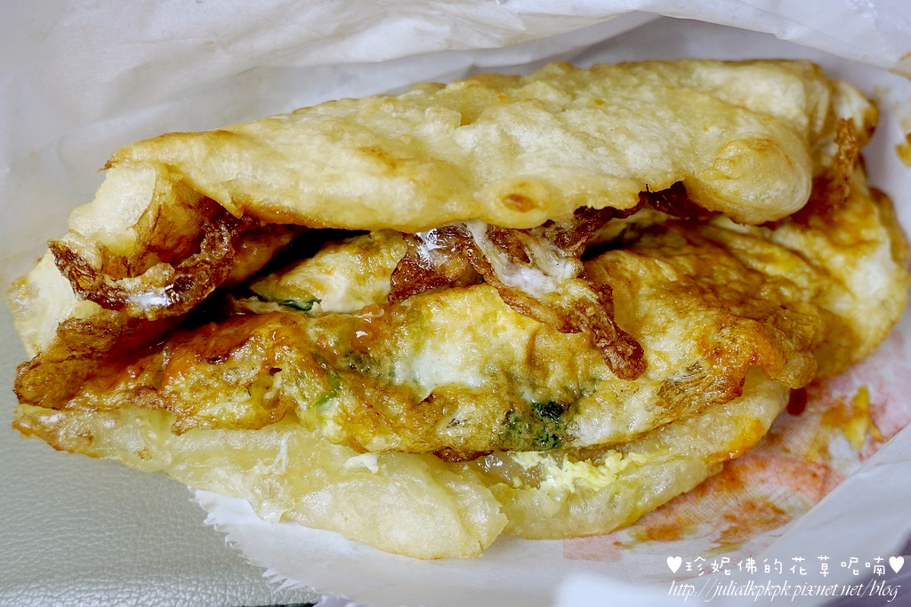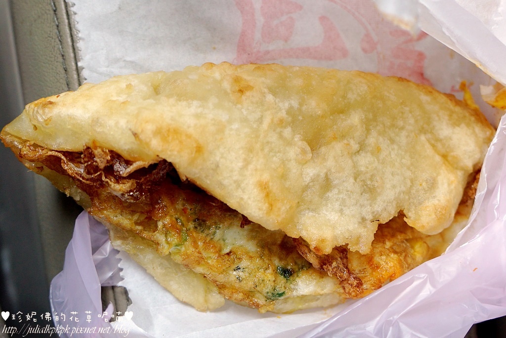 阿肥點的蔥油餅有加蛋(沒加蛋的話是一片25元、有加蛋的話是30元一片)