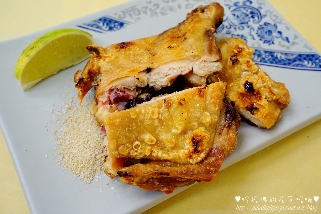 雞腿外皮烤得蠻乾的,導致口感乾硬,雞肉的部分則是有點兒柴