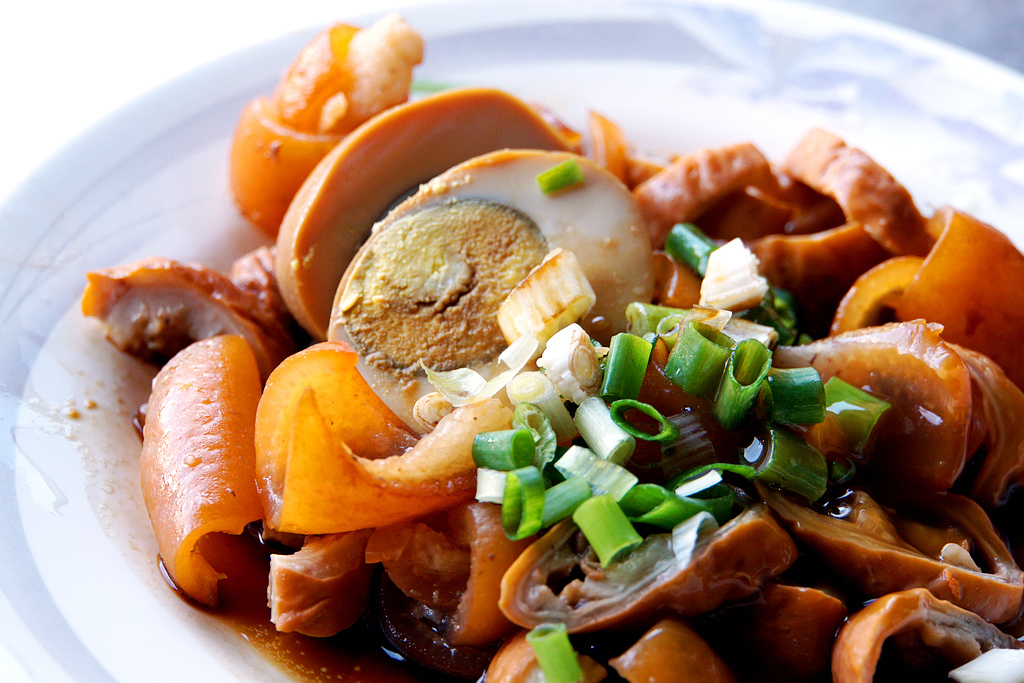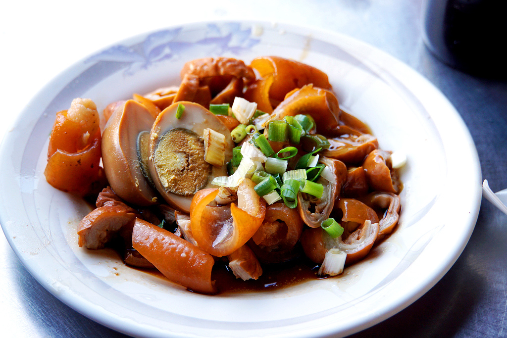 我們點了一份豬皮、一份大腸及一顆滷蛋(賴桑都快變蛋黃哥了,只要店家有滷蛋必點)