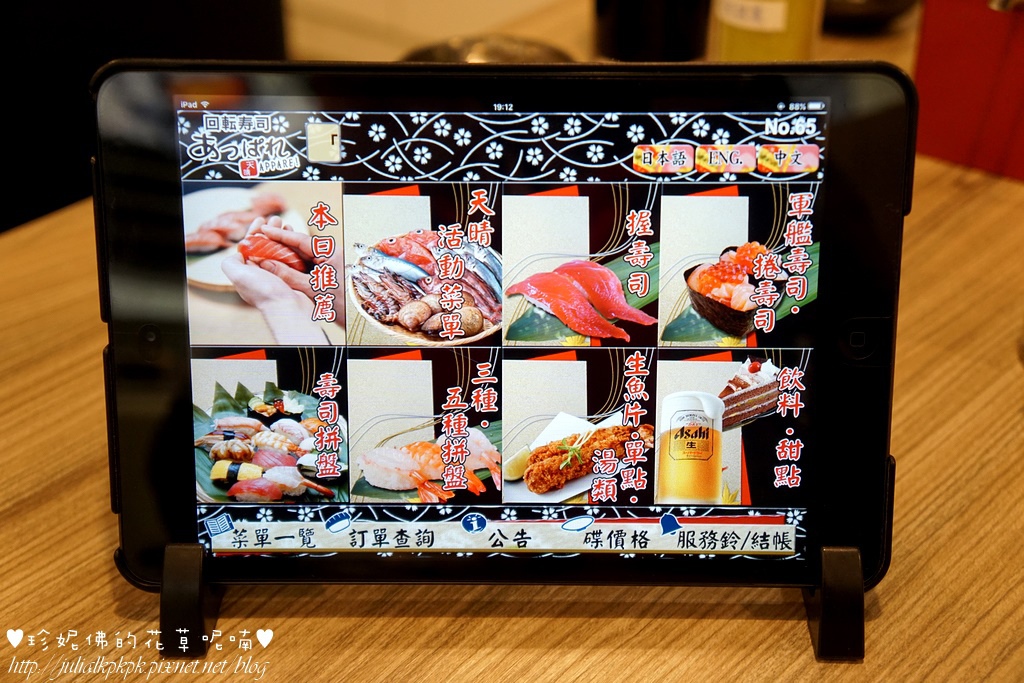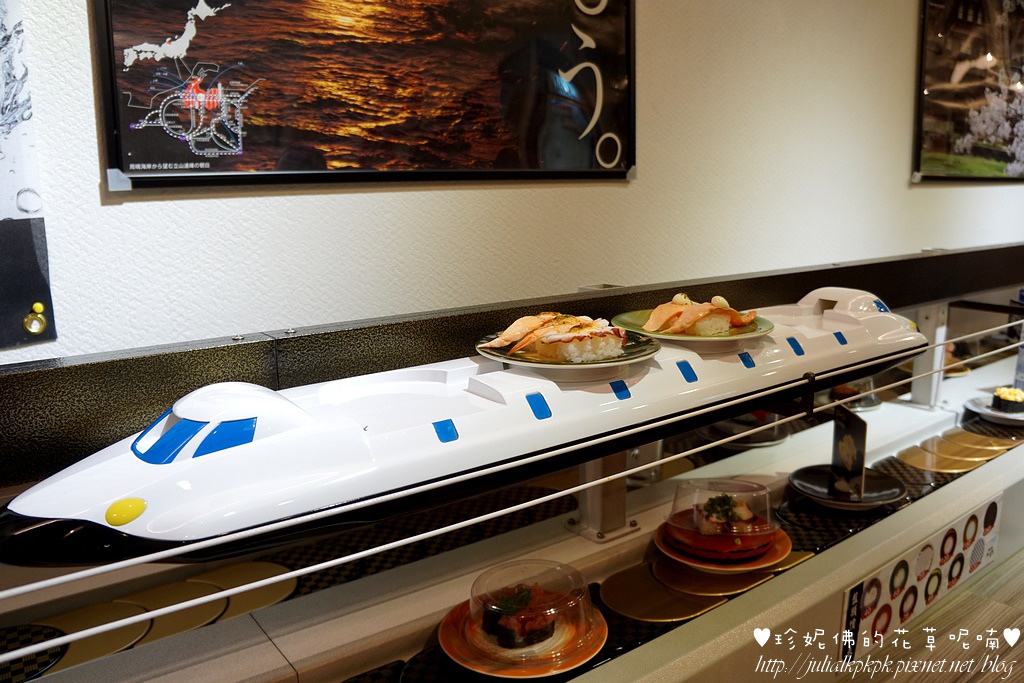 之後有用平板加點一些轉盤上沒有看到的壽司口味,結果是用新幹線送來(哈哈)