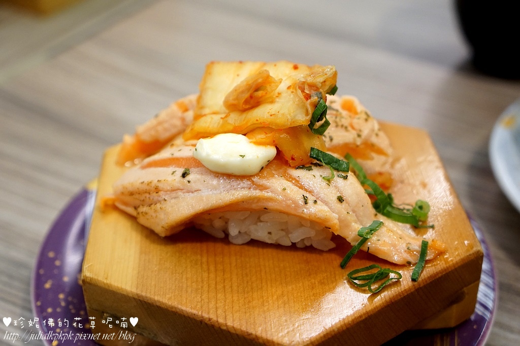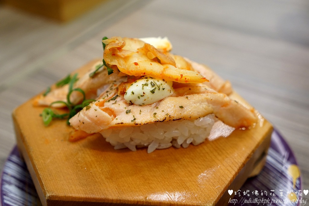 鮭魚加泡菜的壽司,蠻特別的組合,走的是日韓風吧~