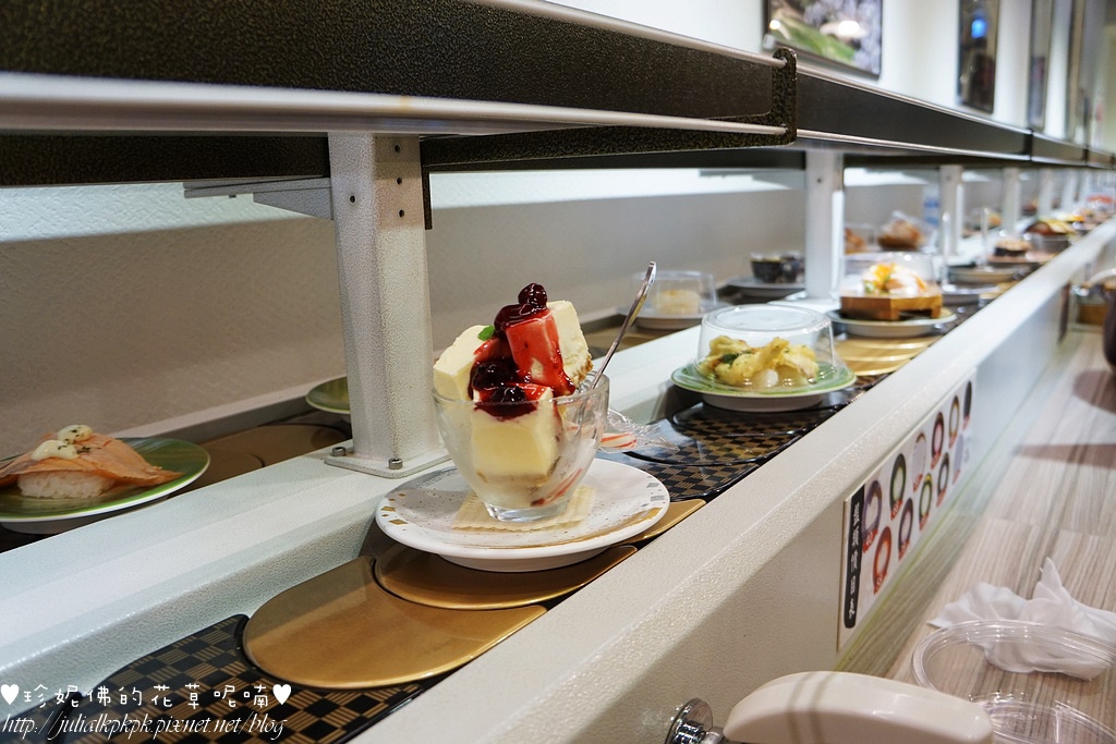 轉盤上除了壽司跟甜點也有提供水果、甜點及飲料,選擇性較為多樣