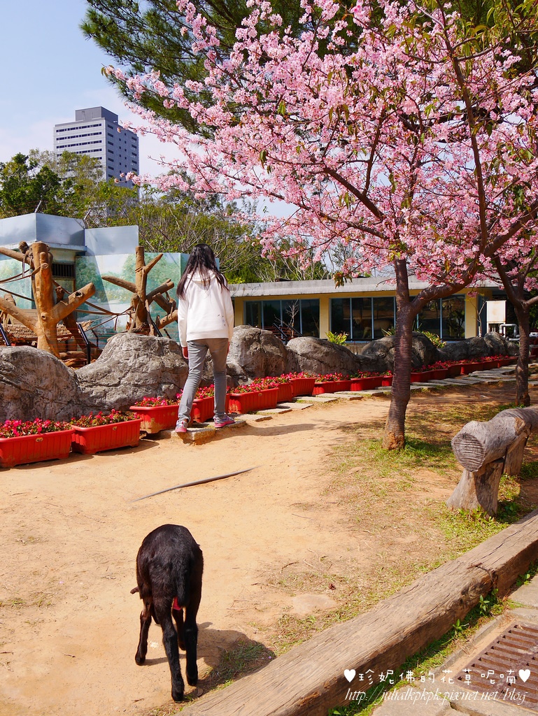 旁邊飼養的是馬來猴,第一次在櫻花樹下近距離的觀賞動物,很喜歡這種fu!