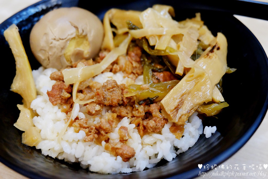 客家筍絲魯肉飯,筍絲有點酸,滷蛋是給整顆的