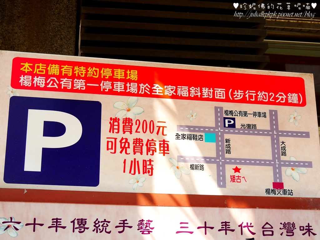 點完餐才知道原來店家有停車場,消費滿200元可免費停車一小時,但我們的車已停在新成路上的路邊停車格了(囧)