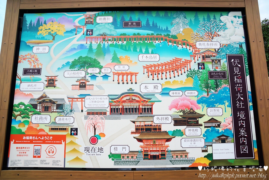 路線圖上標示著大社裡每個建築的位置,著名的千本鳥居還要再往上走