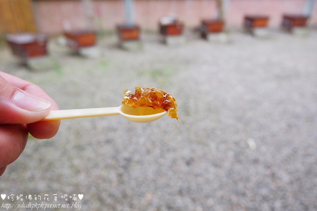 在這裡可以現場試吃蜂蜜、花粉,新鮮蜂蜜吃起來很純