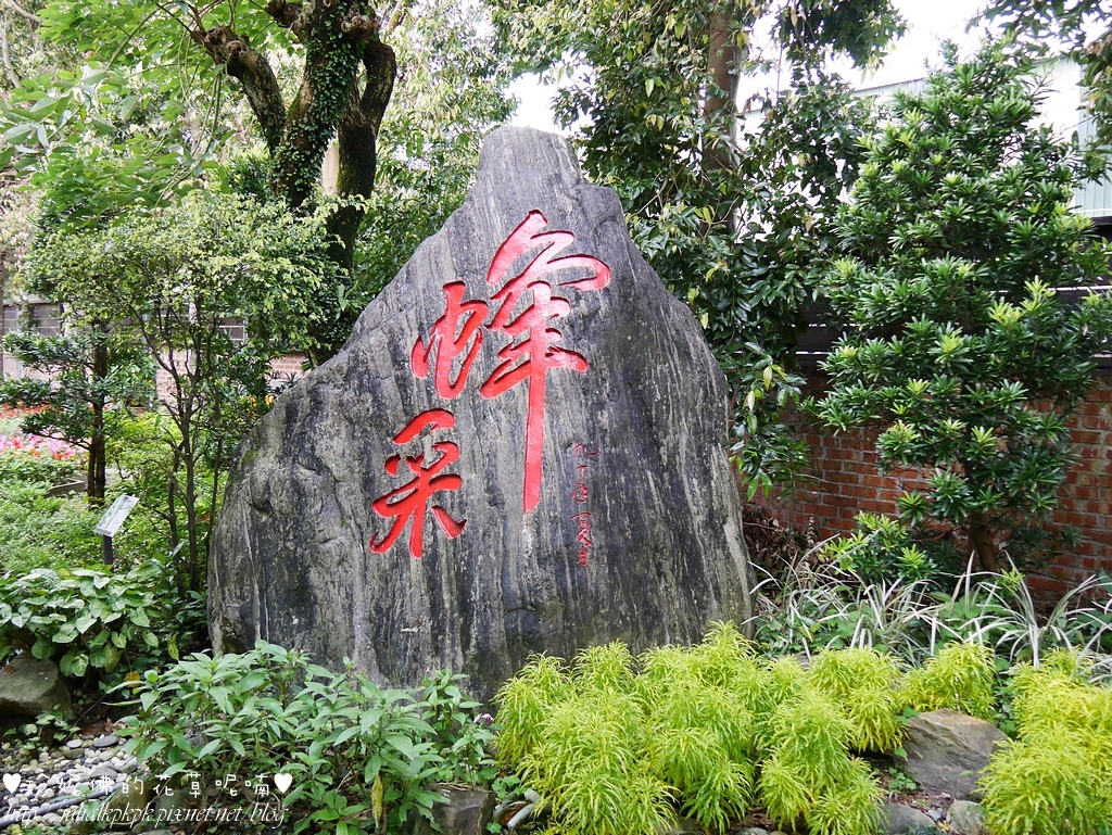 餐廳外面有一整片綠地,綠地當中有造景很適合拍照,當我吃完想出去走走的時候就下大雨了~