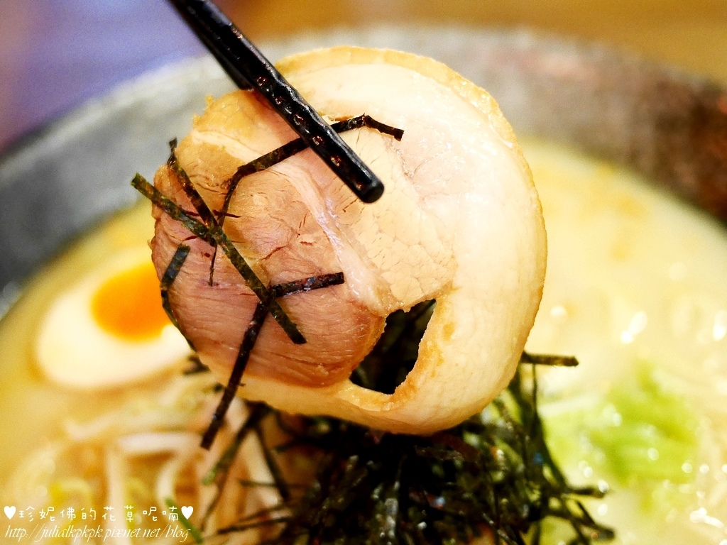 東京豚骨拉麵,叉燒肉片吃起來軟嫩不柴,裏頭的配料筍乾也沒有刺鼻的味道,湯頭喝起來蠻順口的不厚重