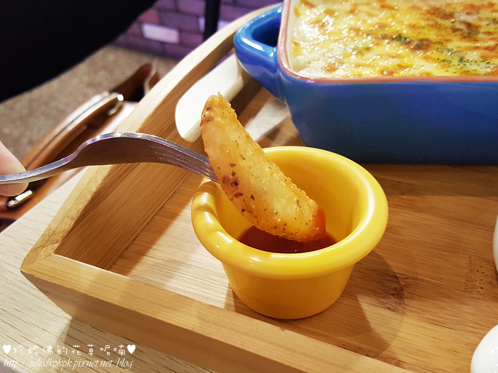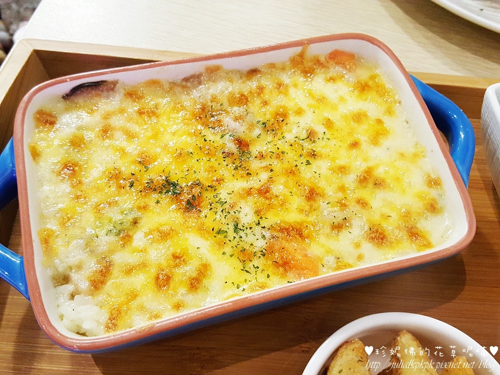 熱騰騰的焗烤一上桌香氣四溢,焗飯裡頭醬汁的量拿捏得不錯