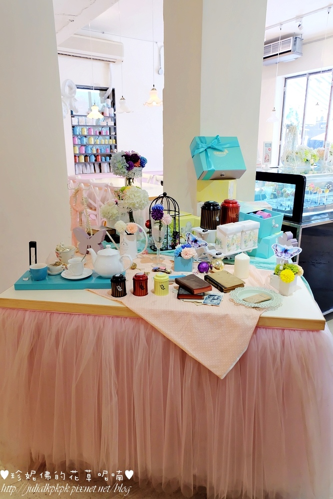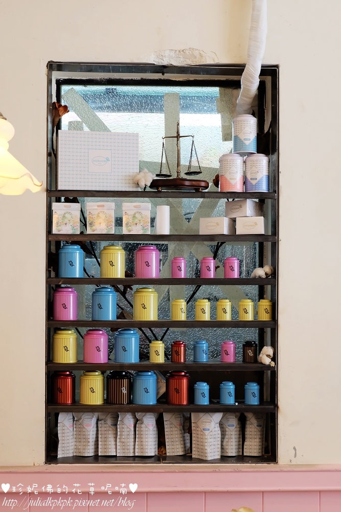 桌上有一些花茶禮盒,這都是有在販售的喔