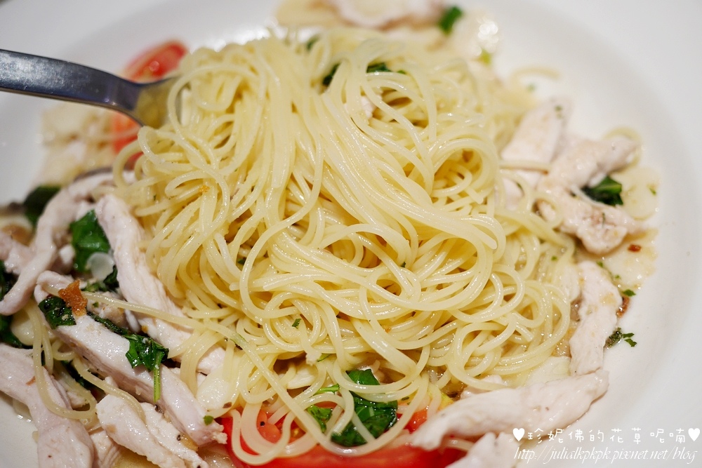 中午點了一份不辣的香料鯷魚雞肉天使麵