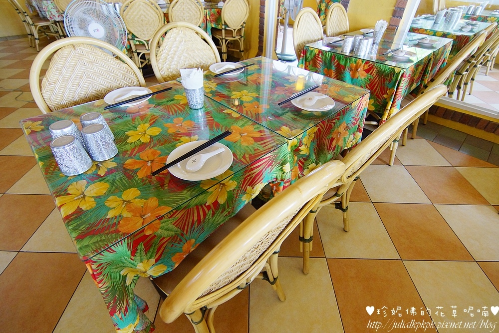 室內外都有用餐區,而且餐廳外面綠化的很美觀,種植了許多顏色的扶桑花,好漂亮!
