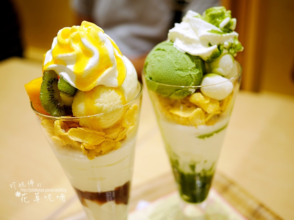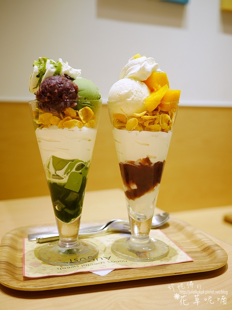 等了一會兒抹茶白玉百匯及仲夏芒果百匯上桌囉!