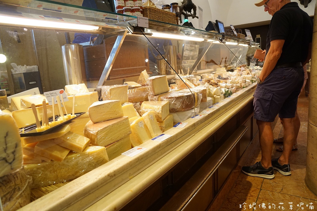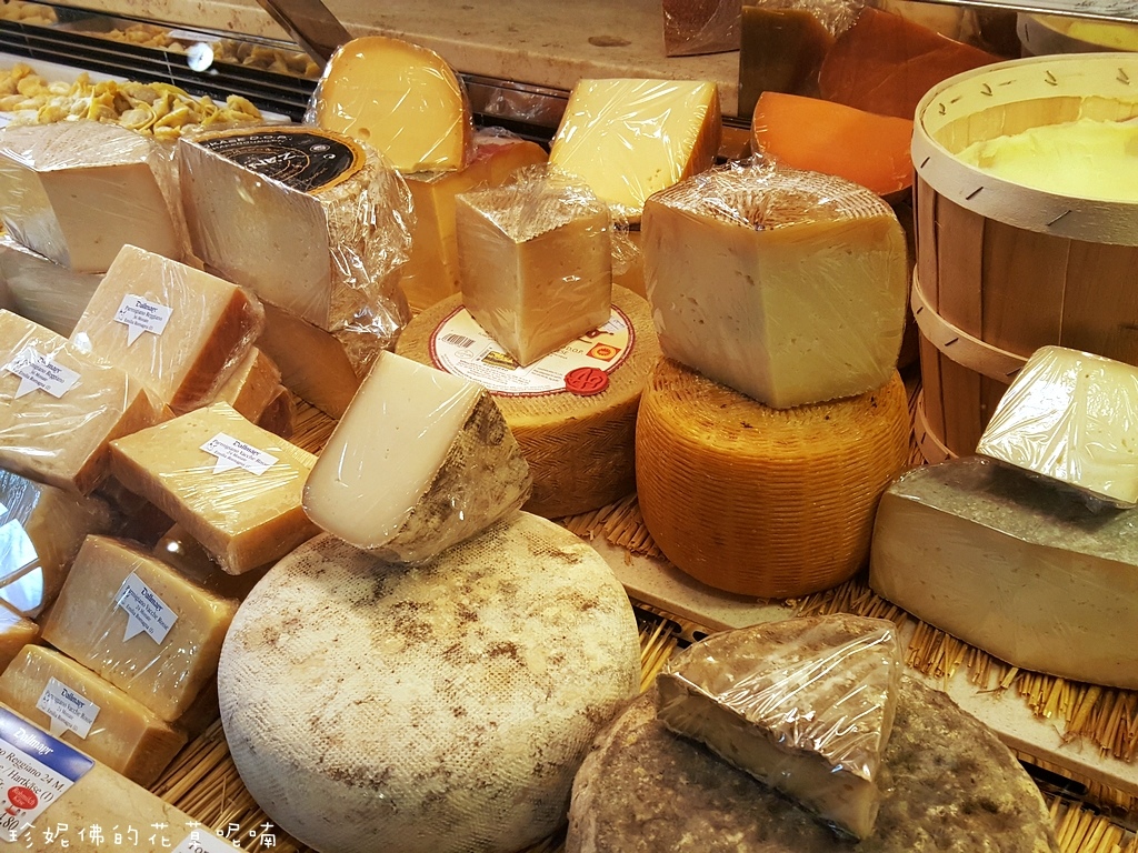 一整櫃都是不同風味的乳酪,有切好小塊的可以試吃