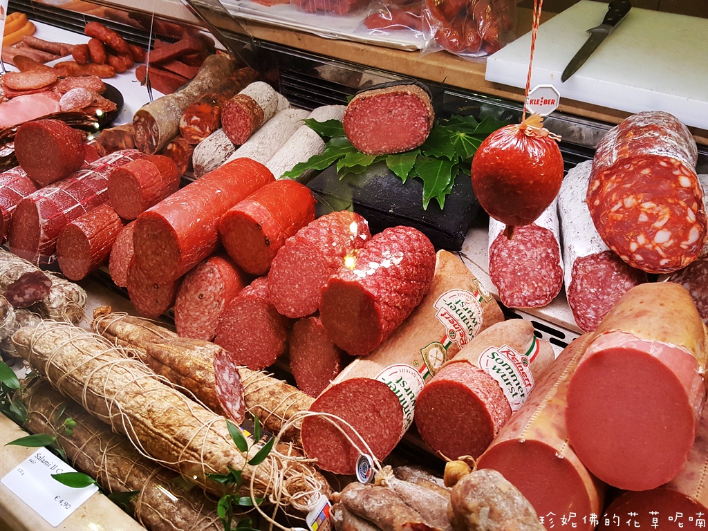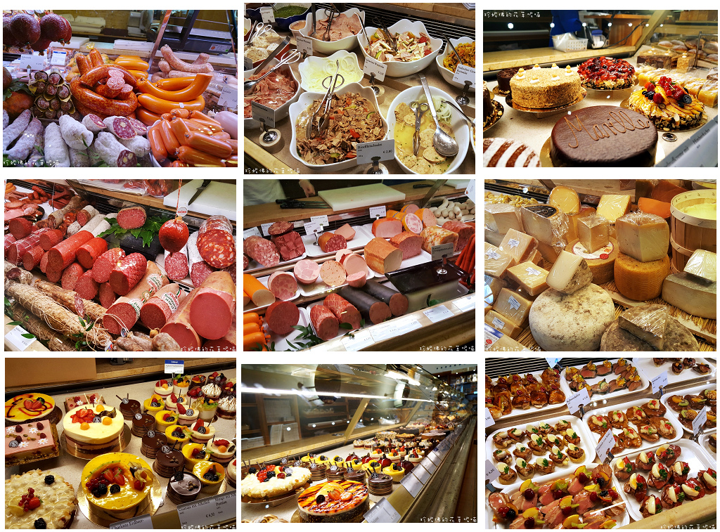 賣場中販售許多精緻高級的食材與伴手禮,酒、咖啡、巧克力、火腿、蛋糕及一些熟食等等都有