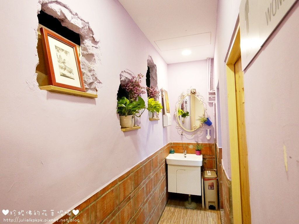 廁所很乾淨沒有異味,裡面放了許多乾燥花味道香香的,牆壁也有彩繪 XD