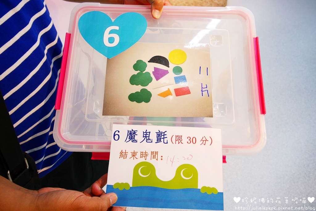 每個拼貼區都有對應的號碼,假設借的是6號那就只能在6號區域拼貼,玩完之後可以再到櫃台借用其他號碼的教具