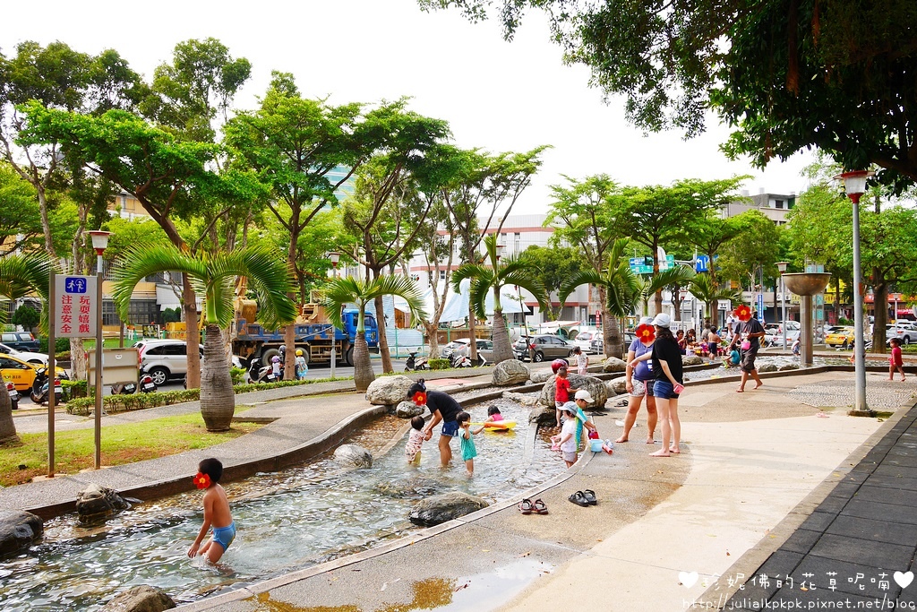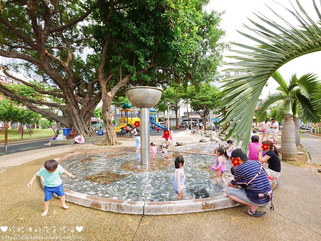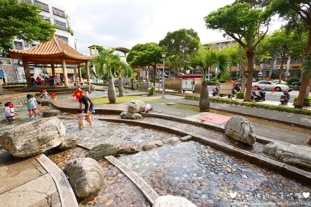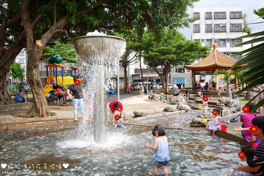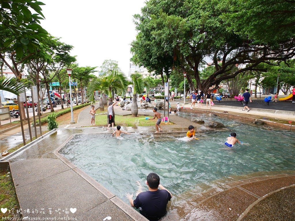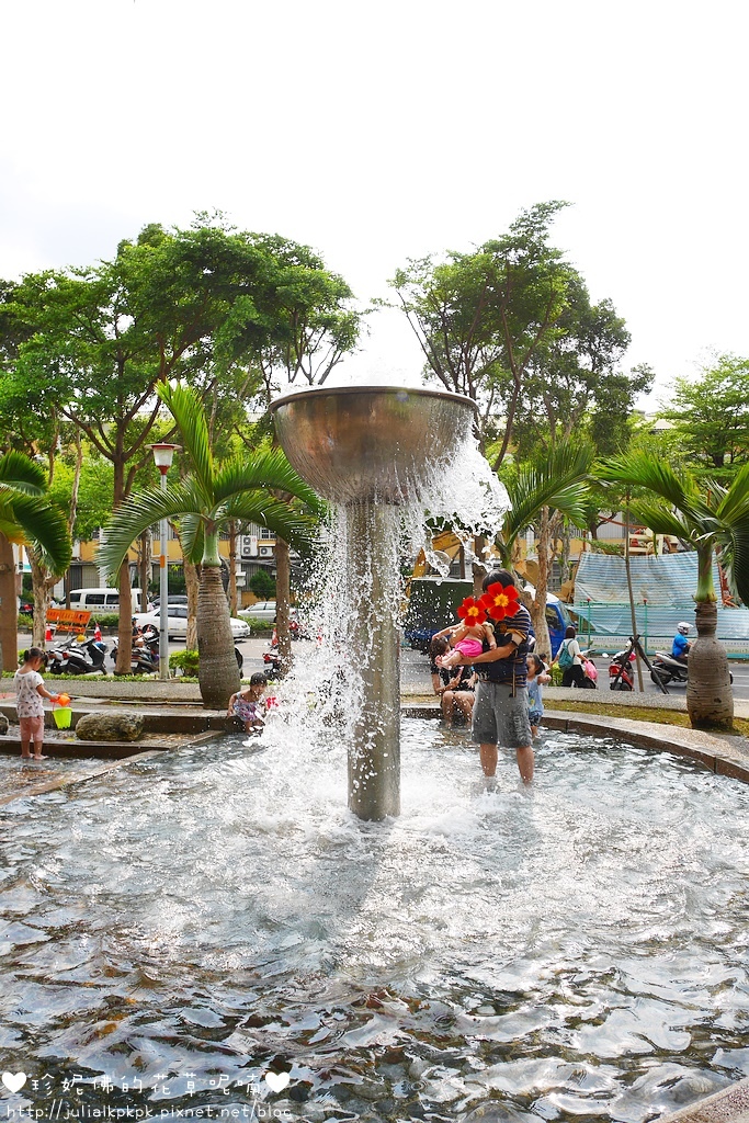 另外一邊的噴水池是淺水區,水深只到腳踝,可以撩水(台語)那樣
