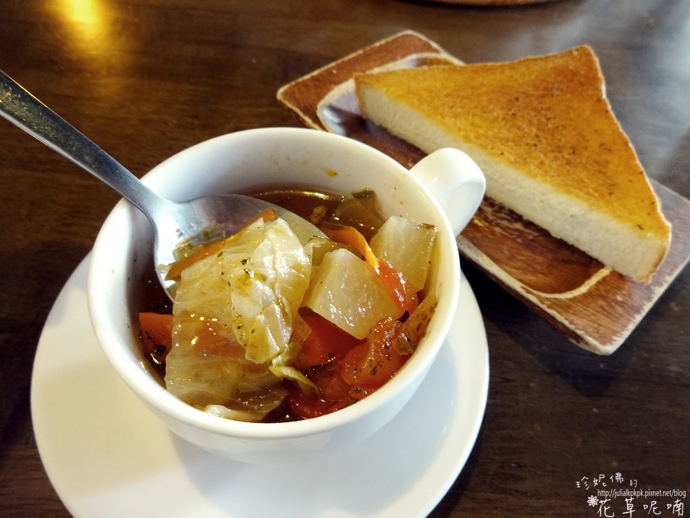 隨餐附的湯品,蔬菜很多湯喝起來也順口,味道上比較清淡
