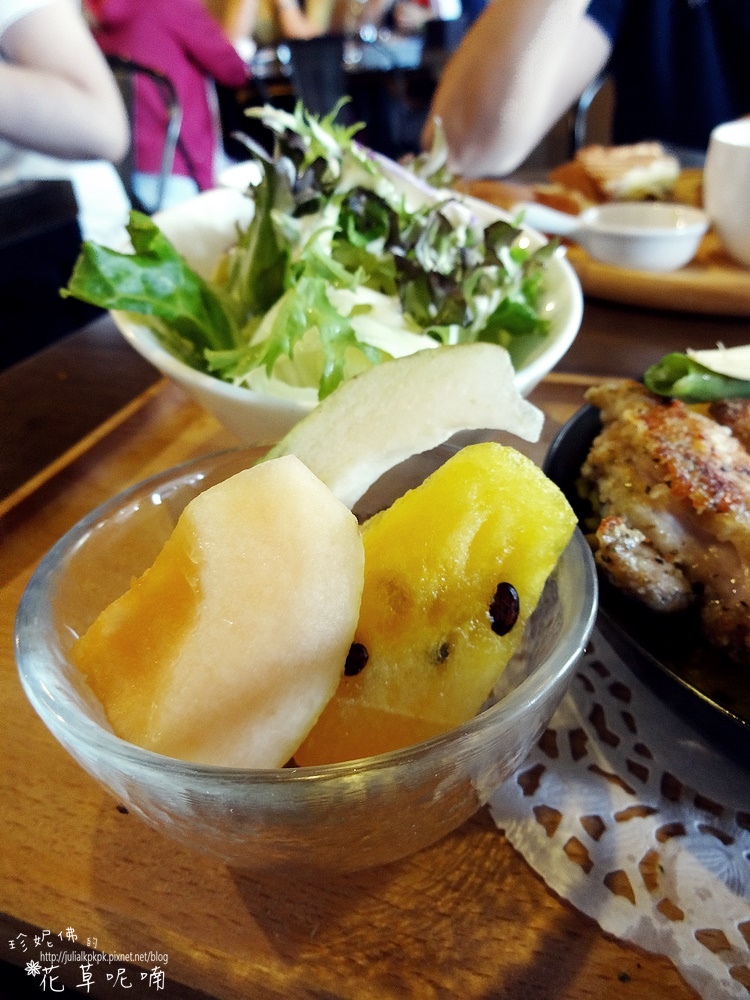 除了沙拉及湯,還附有水果,份量看起來不大但我竟然差點吃不完